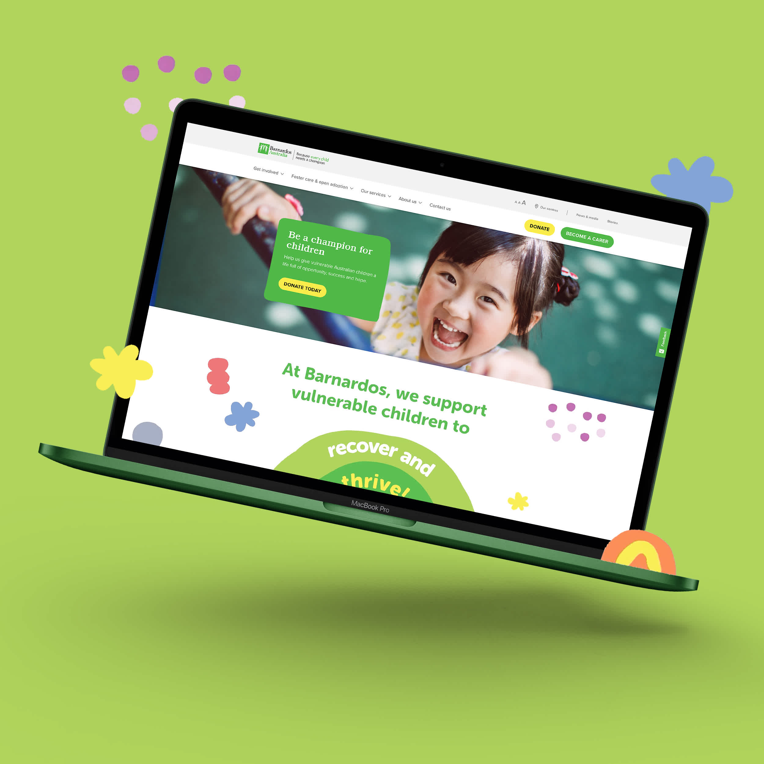 Following our extensive UX work, we then looked to overhaul the User Interface – and commenced by creating new blocks and elements to be the focal point of the look and feel. Specifically, we developed colourful and adjustable solid blocks that sit behind key messages and headlines – to move away from the corporate and serious tone of their previous UI. We also created engaging and interactive iconography. Once the UI approach was approved, we rolled it out across all pages – including the Donation and Carer portals. We consolidated their content-heavy pages and created seamless experiences that focused on the goals and objectives of the user personas we had developed. We also incorporated graphs and interactive diagrams to better display dense content and statistics.