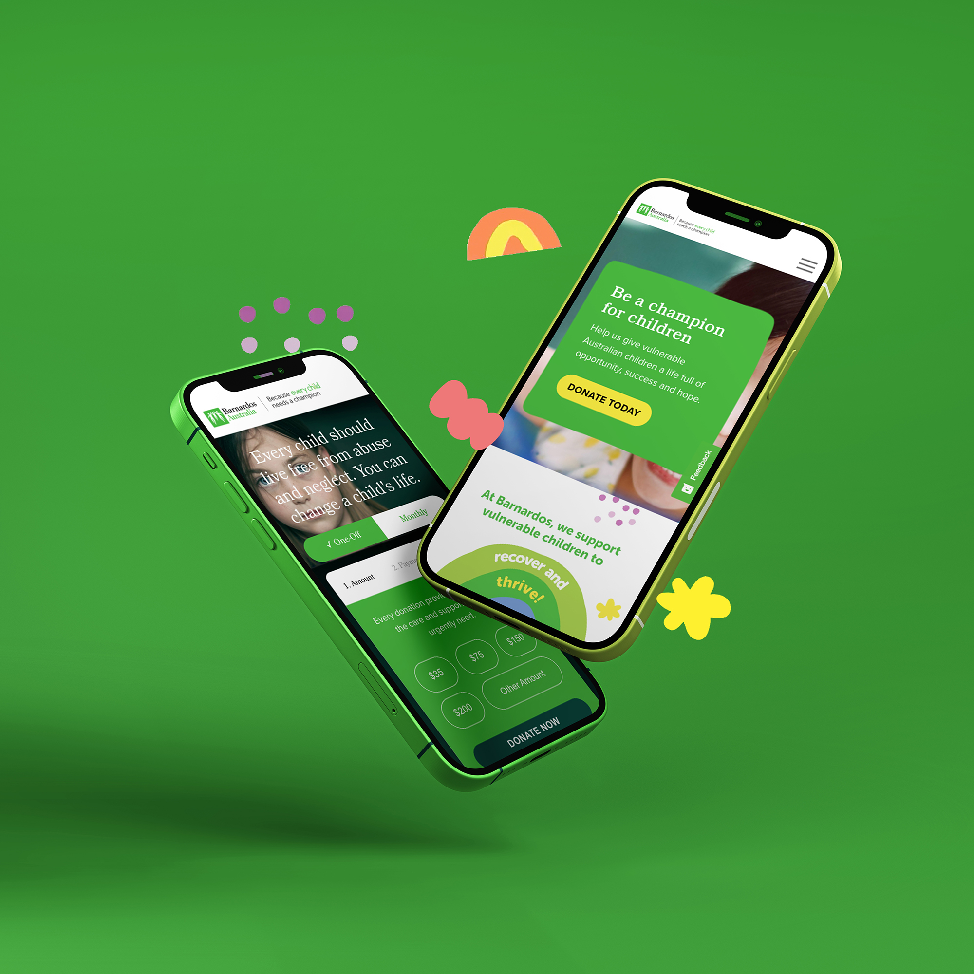 Following our extensive UX work, we then looked to overhaul the User Interface – and commenced by creating new blocks and elements to be the focal point of the look and feel. Specifically, we developed colourful and adjustable solid blocks that sit behind key messages and headlines – to move away from the corporate and serious tone of their previous UI. We also created engaging and interactive iconography. Once the UI approach was approved, we rolled it out across all pages – including the Donation and Carer portals. We consolidated their content-heavy pages and created seamless experiences that focused on the goals and objectives of the user personas we had developed. We also incorporated graphs and interactive diagrams to better display dense content and statistics.