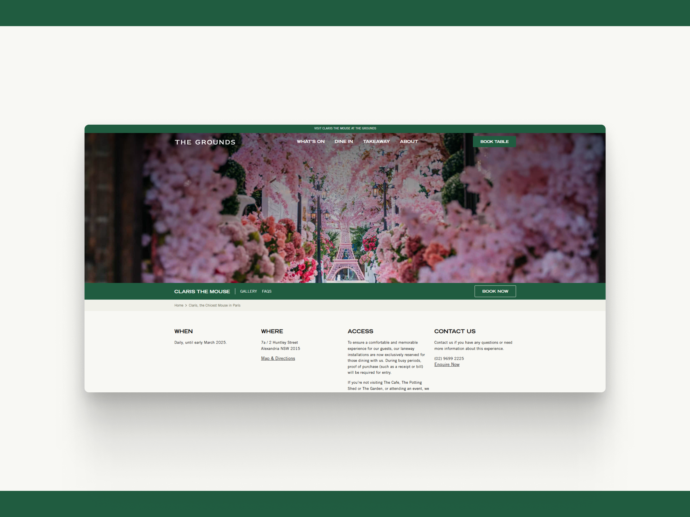 The Grounds is one of Sydney’s most iconic hospitality destinations, but its digital presence hadn’t kept pace with the immersive, curated experiences on-site. Our goal was to reimagine the digital platform to reflect the brand’s evolution: from coffee pioneers to a multi-faceted destination spanning dining, events, retail and catering.