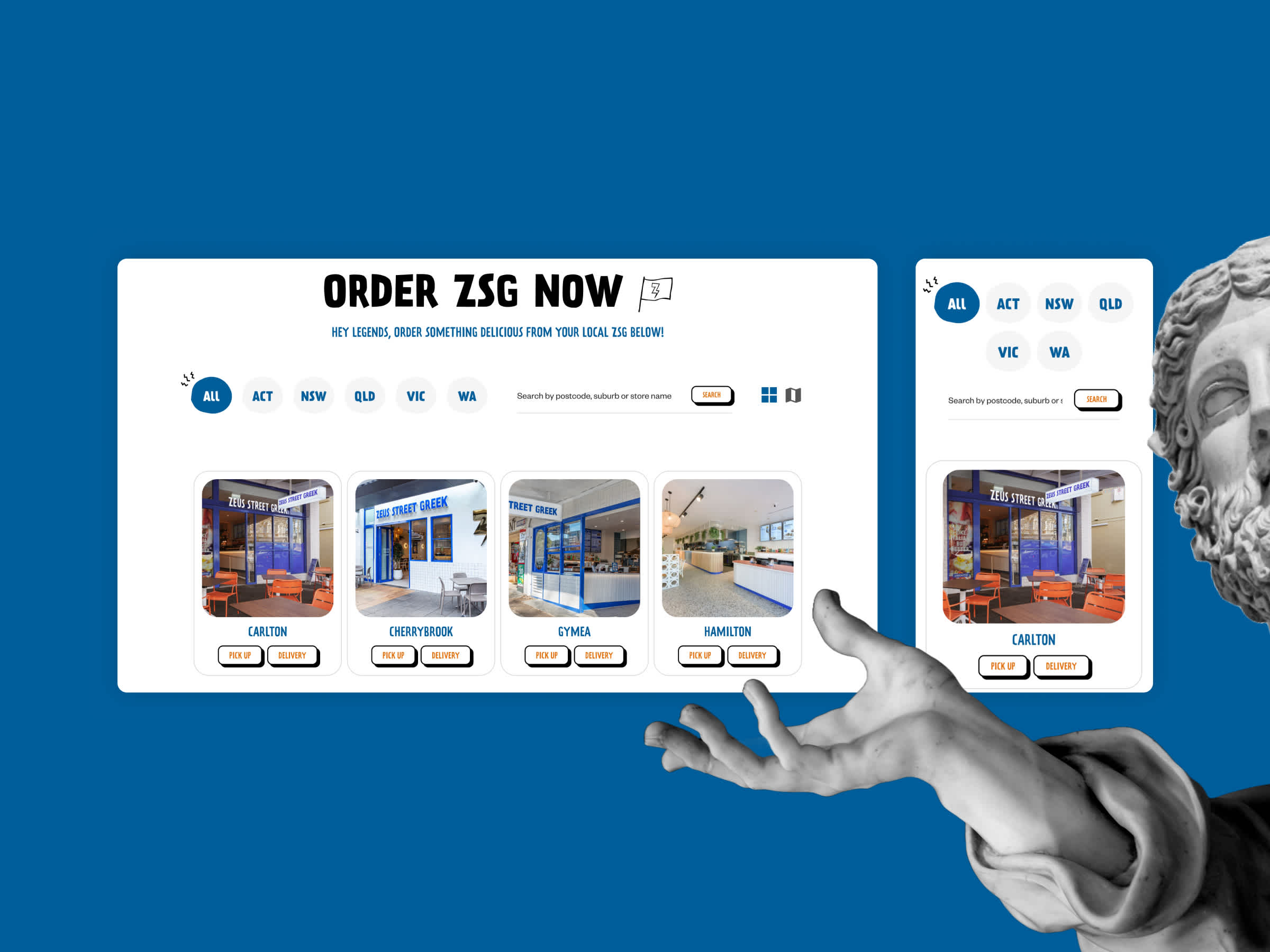 Our brief was clear: relaunch the Zeus Street Greek digital experience to help extend the in-store experience online. The user needs to immediately feel the energy, nuances and quirks of the brand via its digital shopfront, and allow a balance between storytelling and streamlined UX to achieve conversion results.